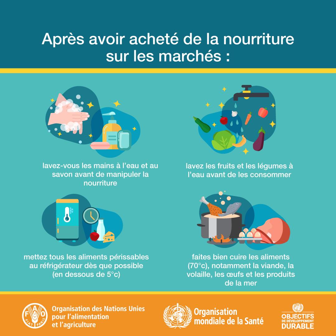 La sécurité sanitaire des aliments est une responsabilité collective que partagent les gouvernements, les producteurs et les consommateurs. Chacun a un rôle à jouer, de bout en bout du circuit de la ferme à la table, afin de garantir que les aliments que nous consommons sont sains et ne nuisent pas à notre santé. Avec la Journée internationale de la sécurité sanitaire des aliments, l’OMS poursuit ses efforts visant à conférer une place importante à la sécurité sanitaire des aliments dans les politiques publiques, ainsi qu’à réduire la charge des maladies d’origine alimentaire à l’échelle mondiale.