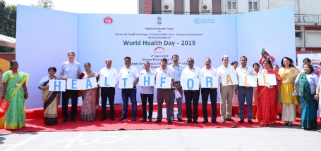 The Ministry of Health & Family Welfare (MoHFW), Government of India and World Health Organization (WHO) today formed a solidarity chain as part of the World Health Day celebrations to reaffirm their commitment to bridging gaps and working collaboratively towards universal health coverage (UHC). The theme of World Health Day 2019 is UHC with a focus on primary health care.