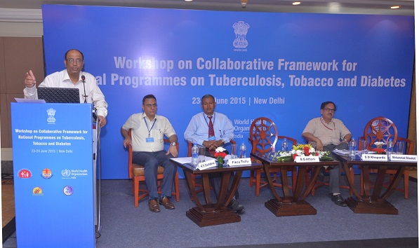 The World Health Organization in collaboration with the Ministry of Health & Family Welfare organized a National Workshop on the Collaborative Framework for National Programmes on Tuberculosis, Tobacco and Diabetes on 23-24 June 2015 in New Delhi. The workshop provided a platform to develop joint implementation strategies to address comorbidities of tuberculosis and noncommunicable diseases with a focus on diabetes and tobacco.