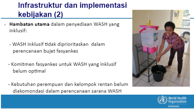 Fig. 2. WHO presented on improving WASH and achieving equalities in healthcare facilities. Credit: WHO Indonesia and Getty Images/RF212192006