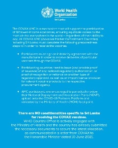 The Ministry of Health in collaboration with WHO Sri Lanka and other stakeholders continues to closely monitor the situation and to strengthen preparedness and response efforts. Sri Lanka has made great progress in controlling the spread of COVID-19; however, the threat is not over yet. We must build on the progress made to keep ourselves, our loved ones, and our communities safe, healthy, and thriving.