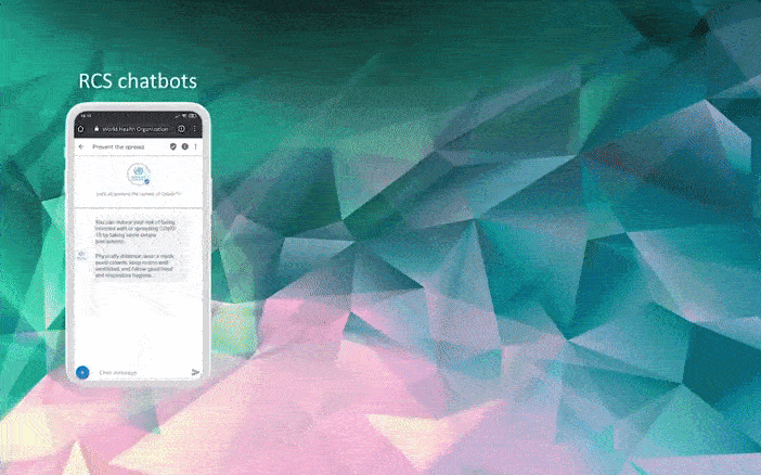 Early in the pandemic, messaging platforms such as WhatsApp, Facebook Messenger and Viber created the WHO Health Alert Chatbot, which provides millions of people with the latest news and information on how to protect yourself and others from COVID-19, now available in over 19 languages. The WhatsApp chatbot alone has reached over 13.5 million people.